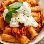 KLJUČNE BESEDE burrata, burrata pasta, domača paradižnikova omaka, feta testenine s paradižnikom, kosilo v 15 minutah, testenine v paradižnikovi omaki