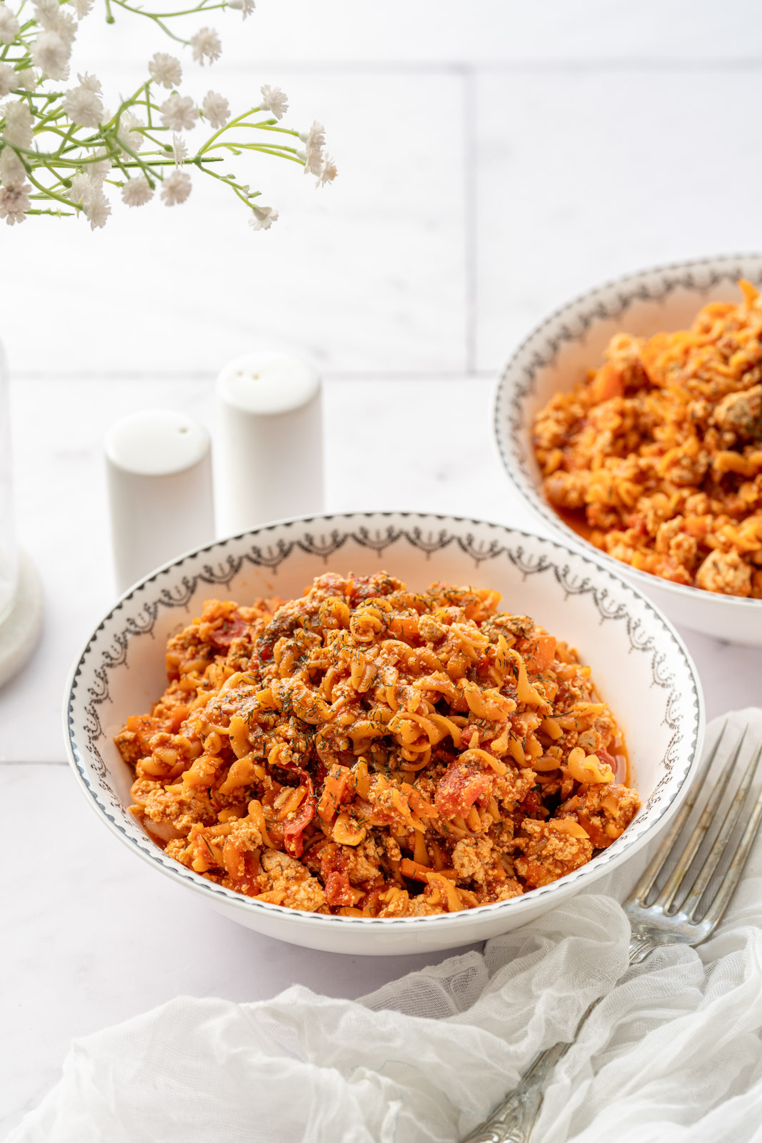 Visokobeljakovinske testenine s tofujevo “ragu” omako